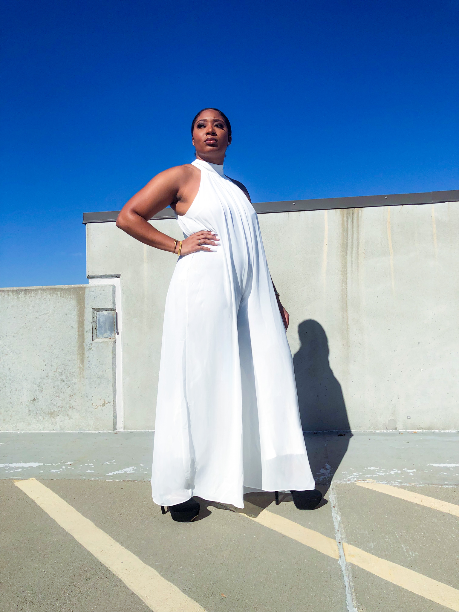 Oh, Jade. Jade carries flow and grace. Jade is intense in her intent to not only flow but to standout in the genre of jumpsuits. When you see Jade, you'll know. Just be sure to say hey. Model is 5'7, wearing a size L.